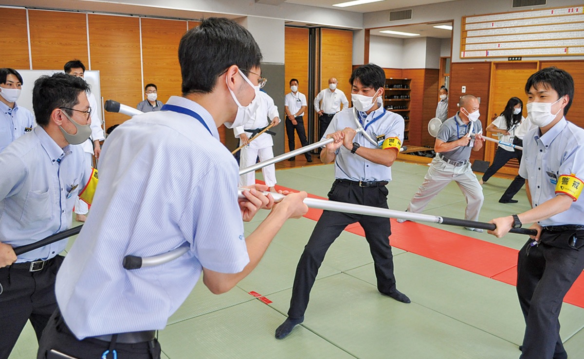 生活安全課の土屋昌志警部補は「刺股は相手が刃物などの武器を出した際に、被害を受けないために間合いを取るためのもの。抑え込んで捕まえるのではなく、自分やお客さんたちの安全を確保し、警察が駆け付けるまでの10〜15分を持ちこたえてくれれば」と説明。「相手を留めておくことが狙いなので、大声を出して威圧することも有効」と話す。