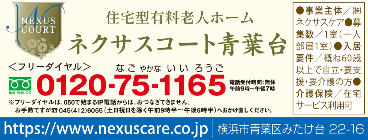 コロナ禍、面会や行事などさまざまな面で制限が続いてきた介護施設。閑静な住宅地に位置する住宅型有料老人ホーム「ネクサスコート青葉台」(横浜市青葉区)は、6月から入居者の外出や家族との面談を緩和。感染対策を徹底しつつ、心から安らげる「第二の我が家」として充実した暮らしを提供している。