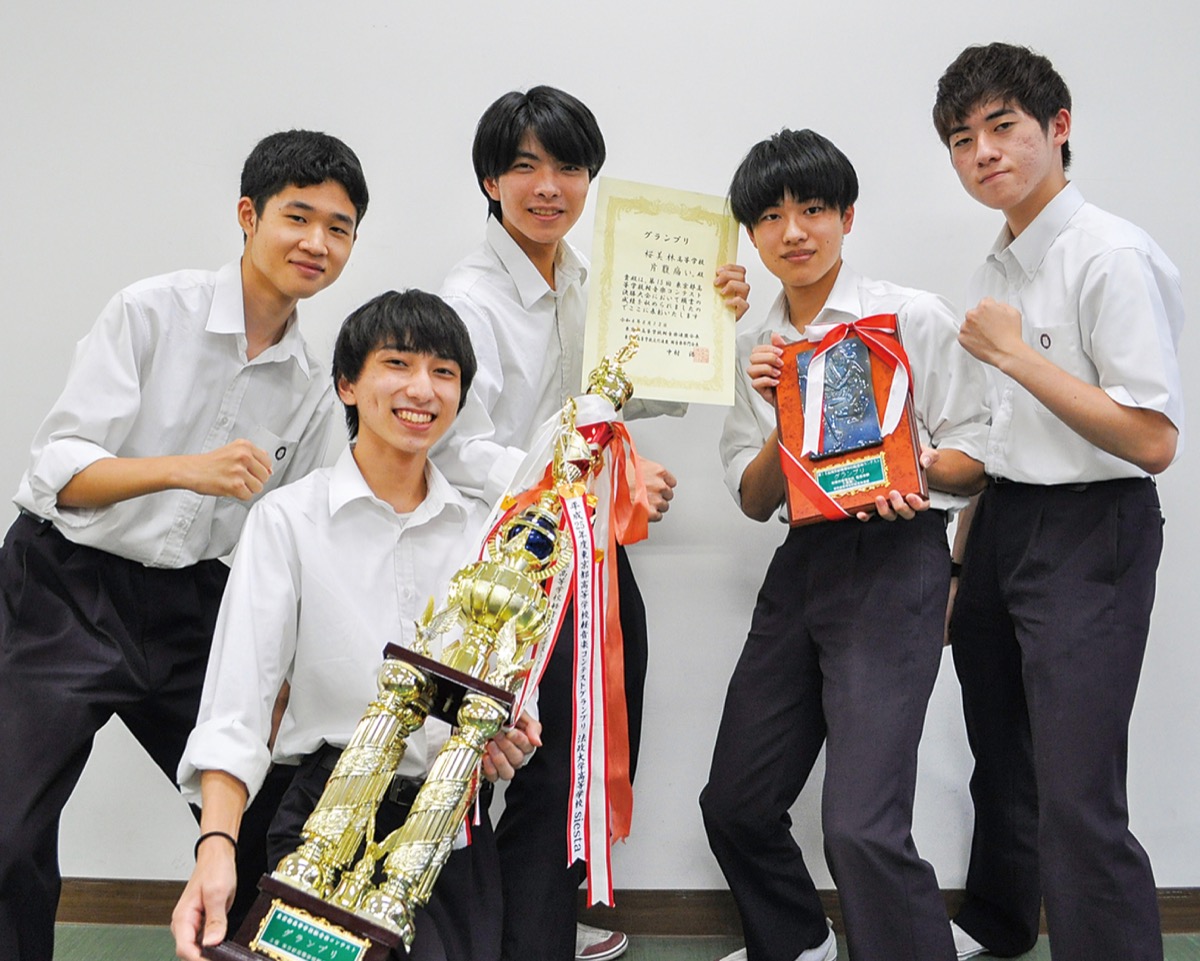 東京都高等学校軽音楽連盟主催の第15回東京都高等学校軽音楽コンテスト決勝大会が8月12日に八王子市のコンサートホールで行われ、桜美林高校軽音楽部2年男子の5ピースバンド、「片腹痛い。」が出場し、グランプリを獲得した。メンバーはリーダーでキーボードの石井千賢(ちさと)さん、ギター・ボーカルの岡田成佑(なるう)さん、ドラムの海老水睦毅(ともき)さん、ギターの山崎紘司朗(こうしろう)さん、ベースの齋藤寧皇(ねお)さんの5人。