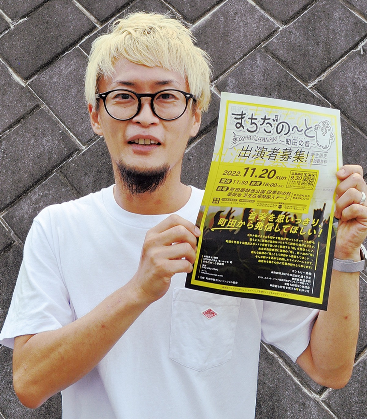 町田市内や近隣市の高校、専門学校、子どもセンターなどに参加者募集のチラシを配布した横井さんは「自分も中学生の頃からバンドを組み、音楽活動に取り組んできたひとり。楽器と町田を愛するハートを持つ方々の出演を期待しています」と呼び掛ける。