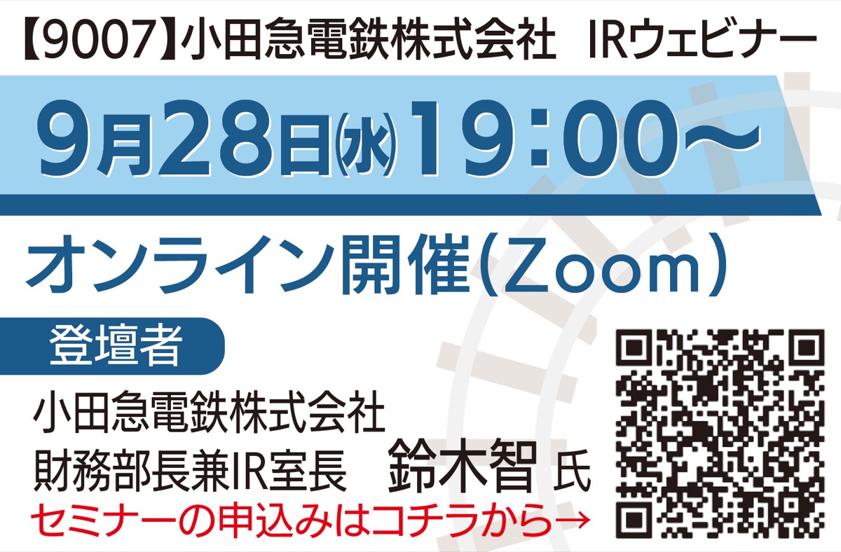 同店では新店オープンを記念して9月28日(水)に参加費無料のウェブセミナーを開催する。現在予約を受付中。「日本株市場に興味、関心がある方や小田急電鉄株式会社の株式を保有・興味のある方にお勧めのIRウェビナーです」と同店スタッフ。また「口座のない方のご相談も歓迎しています」とも。
