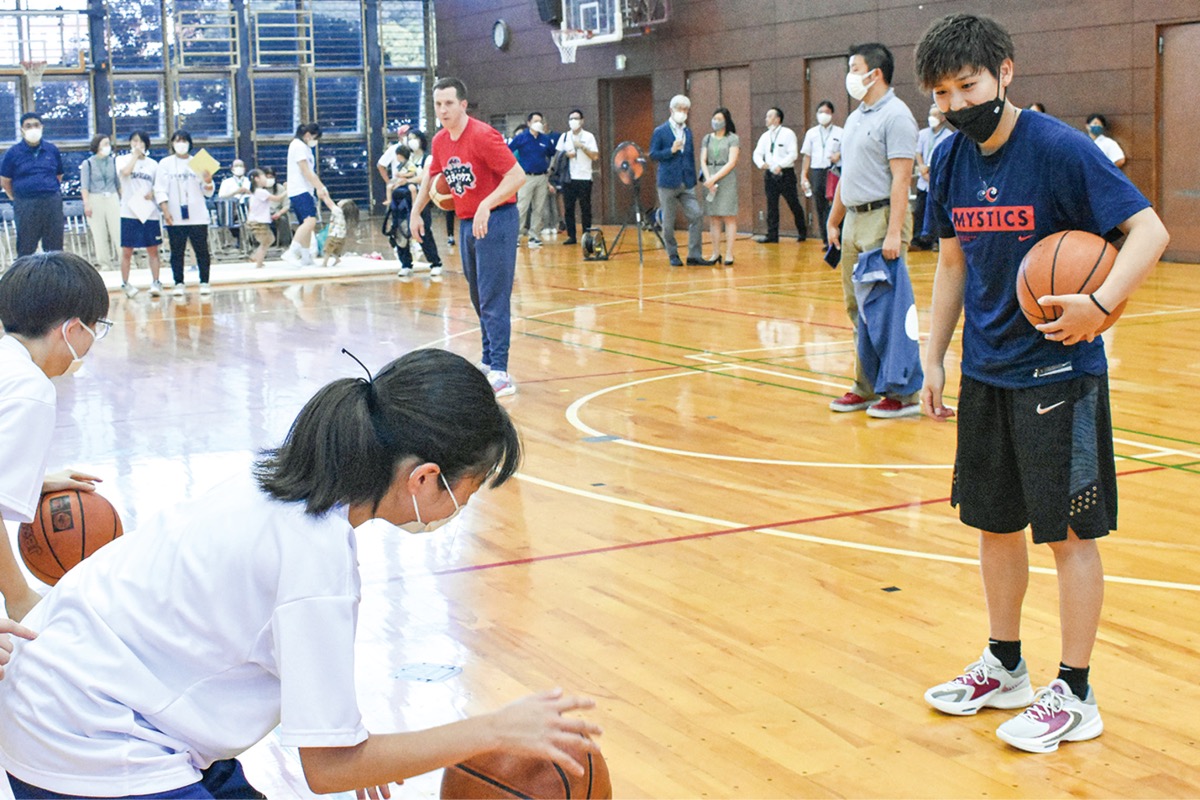 参加したバスケ部の大河内輝和さん(16)は「英語が苦手で緊張した。プロは上手さの桁が違うと思った」と驚きを語った。指導を終えた町田選手は「久しぶりに中高生と接して楽しかった。バスケを心から楽しみ、目標に向かって努力してほしい」とメッセージを送った。