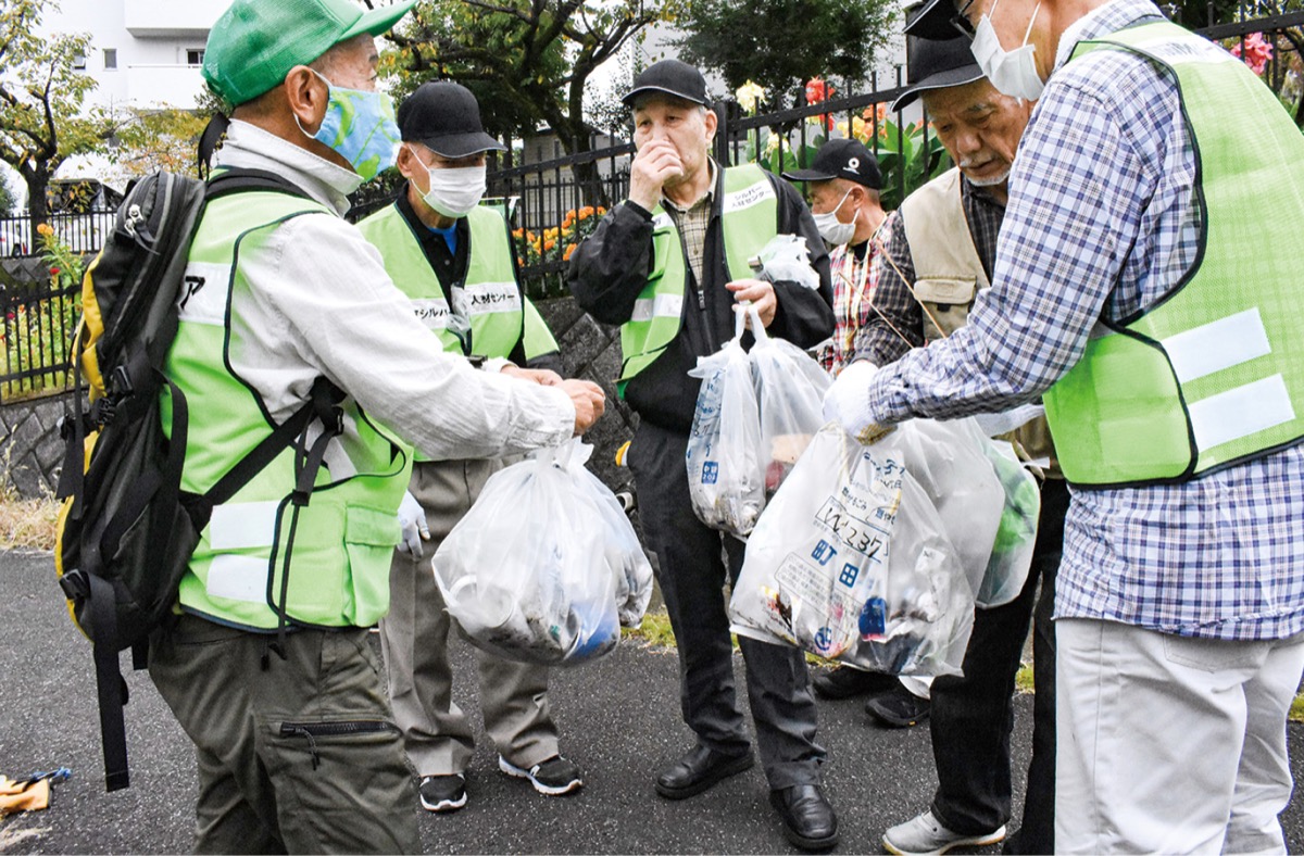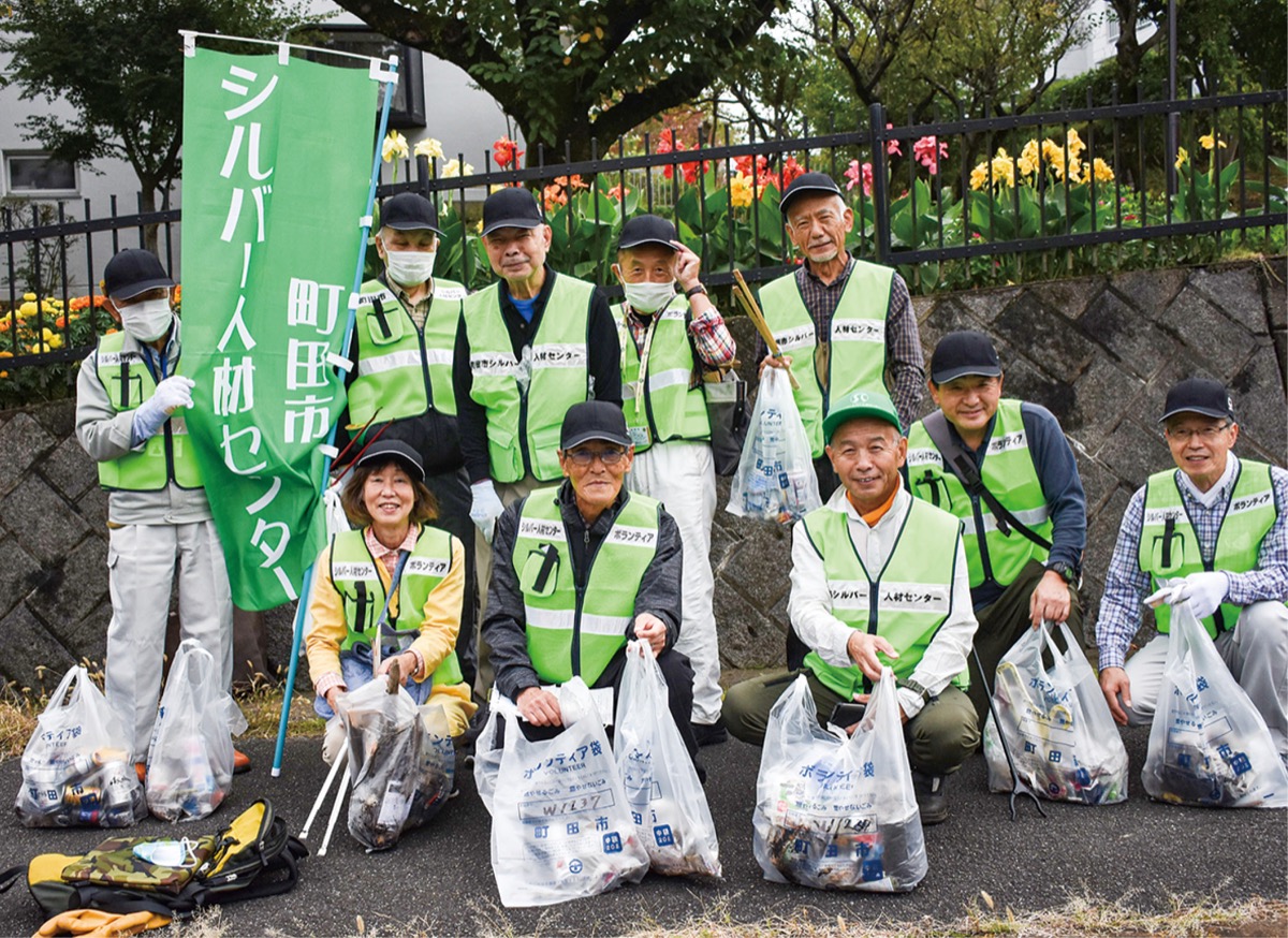 町田市シルバー人材センターが10月15日、市内一斉美化清掃ボランティアを行った。午前9時から76班、約300人の同センター会員らが市内の各地区でそれぞれ活動を開始。担当地域のメイン通りの歩道、バス停などのゴミを拾い集めた。