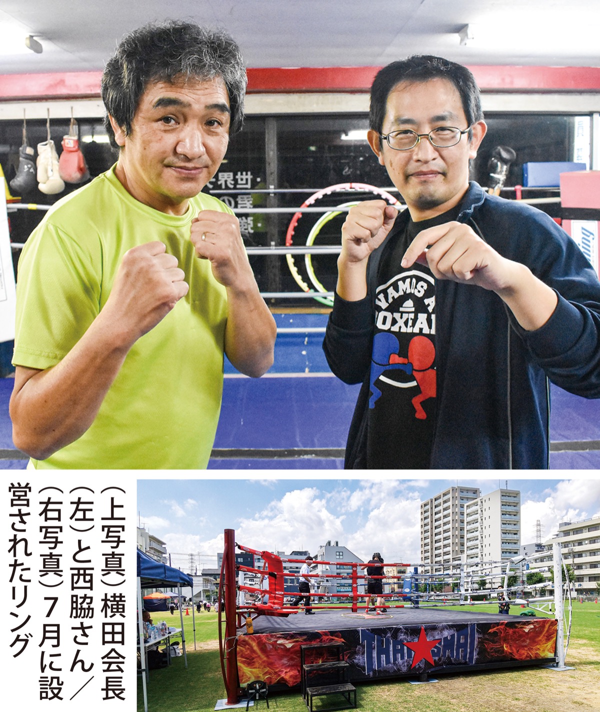 当日は、同ジムや近隣ジムの選手がリングに上がる。3分×2ラウンドのスパーリングを行い、リングアナウンサーが実況。会場を盛り上げる。雨天対策も施し、来場者2500人を目指す。横田会長は「ボクシングの試合会場は怖い所でなく、勇気を感じてもらう場所。ストレス発散にもなるのでぜひ選手を応援しに来て」と呼び掛ける。