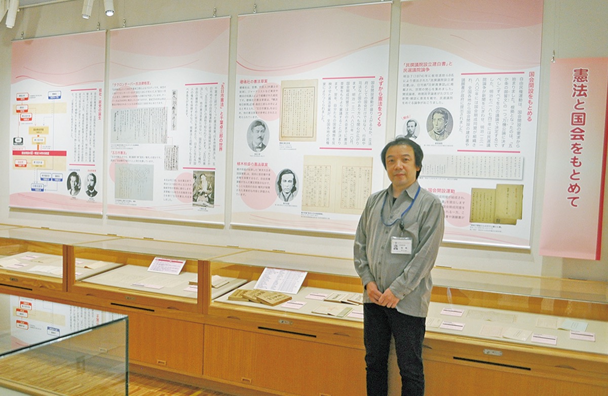 同館学芸員の松崎稔さんは「研究者向けのコアな展示が多かったが、授業で習うような運動全体の説明から、馴染みのある町田市ゆかりの民権家の紹介を増やし、親子連れでも足を運んでもらえるように間口を広げました」と説明。来館者の年齢層の幅を広げたい考えだ。