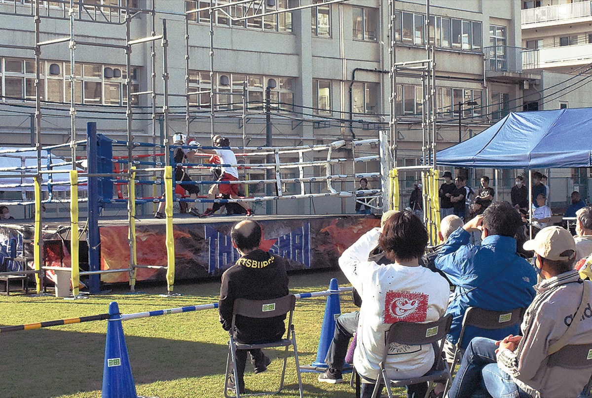 横田ボクシング&スポーツジム(横田広明会長)が11月19日、町田シバヒロで「青空ボクシング」を行った=写真。全国で20年以上ぶりとされる屋外開催。午後0時に開場すると観客が集まり始め、プレ興行としての来場者数は延べ200人となった。