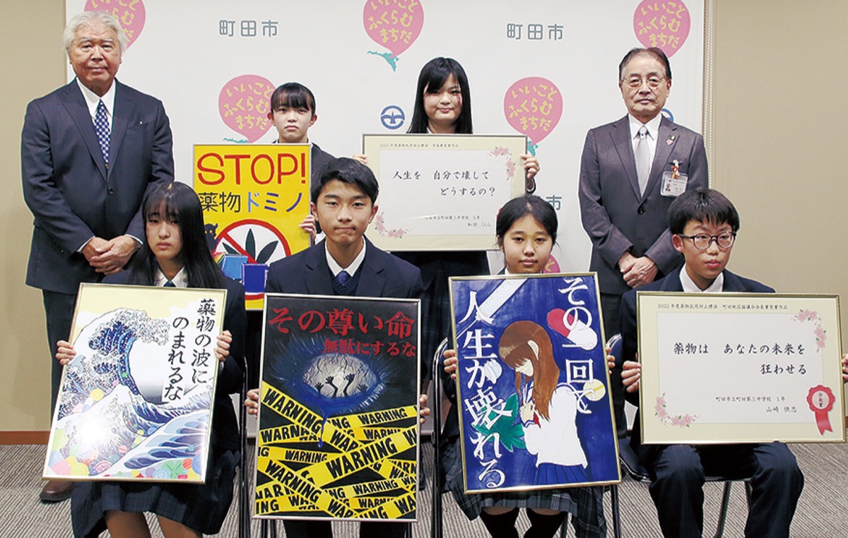 青少年の薬物乱用に対する意識向上を目的に、東京都福祉保健局が都内の中学生を対象に平成11年から実施する事業。市内からはポスター414点・標語462点の応募があり、東京都薬物乱用防止推進町田地区協議会会長賞、市長賞に計6作品が選定された。