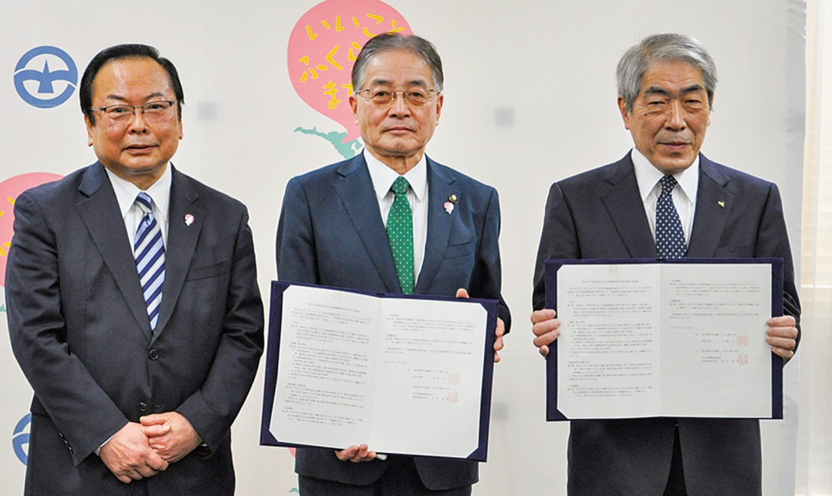 町田市は先月26日、町田市農業協同組合(JA町田市)と学校給食に関する連携協定を締結した。市内小・中学校の学校給食において、新鮮な地場農産物を子どもたちが味わい、農産物の生産過程をより身近に感じながら「食」を学ぶことことが目的。子どもたちの「豊かな心、健康な体、生きる力」を育んでいく。また2025年度までに中学校全員給食を開始することに伴い、これまで以上に地場農産物を学校給食で活用するために連携を図るというもの。同日市庁舎で締結式が行われ、両者は協定書を取り交わした。