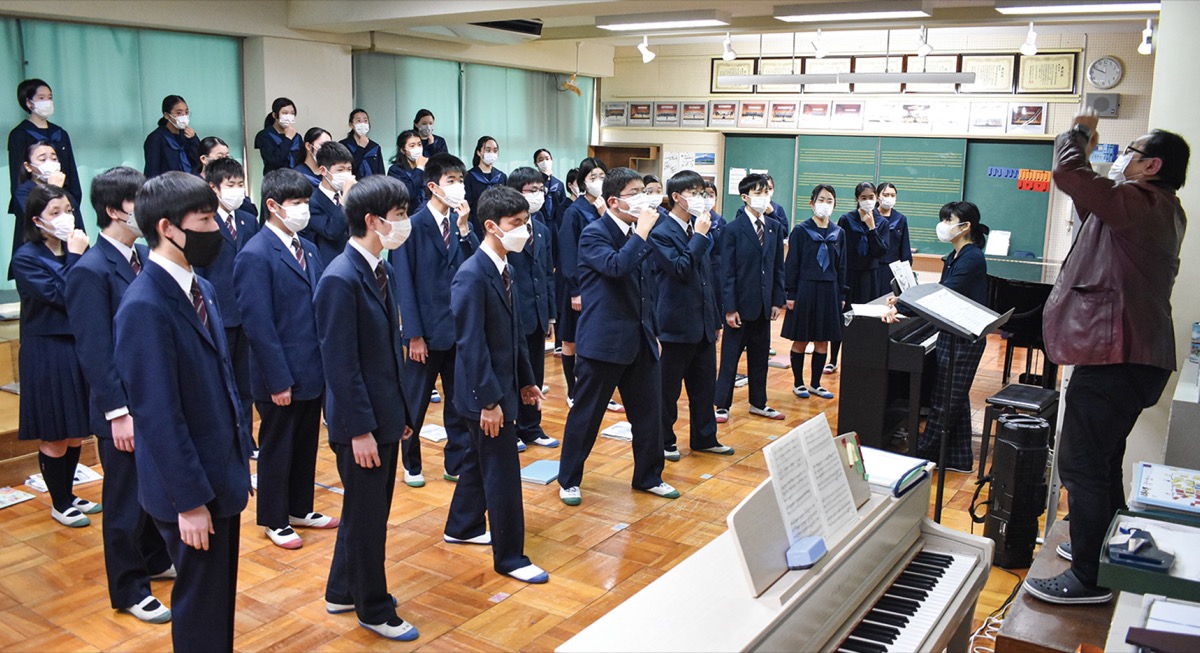 選んだ曲は、混声6部合唱のための「ファンタジア」。隠れキリシタンやケルト人の民謡からインスパイアされたメロディーとハーモニーは、中学生が挑むには難曲と言われている。
