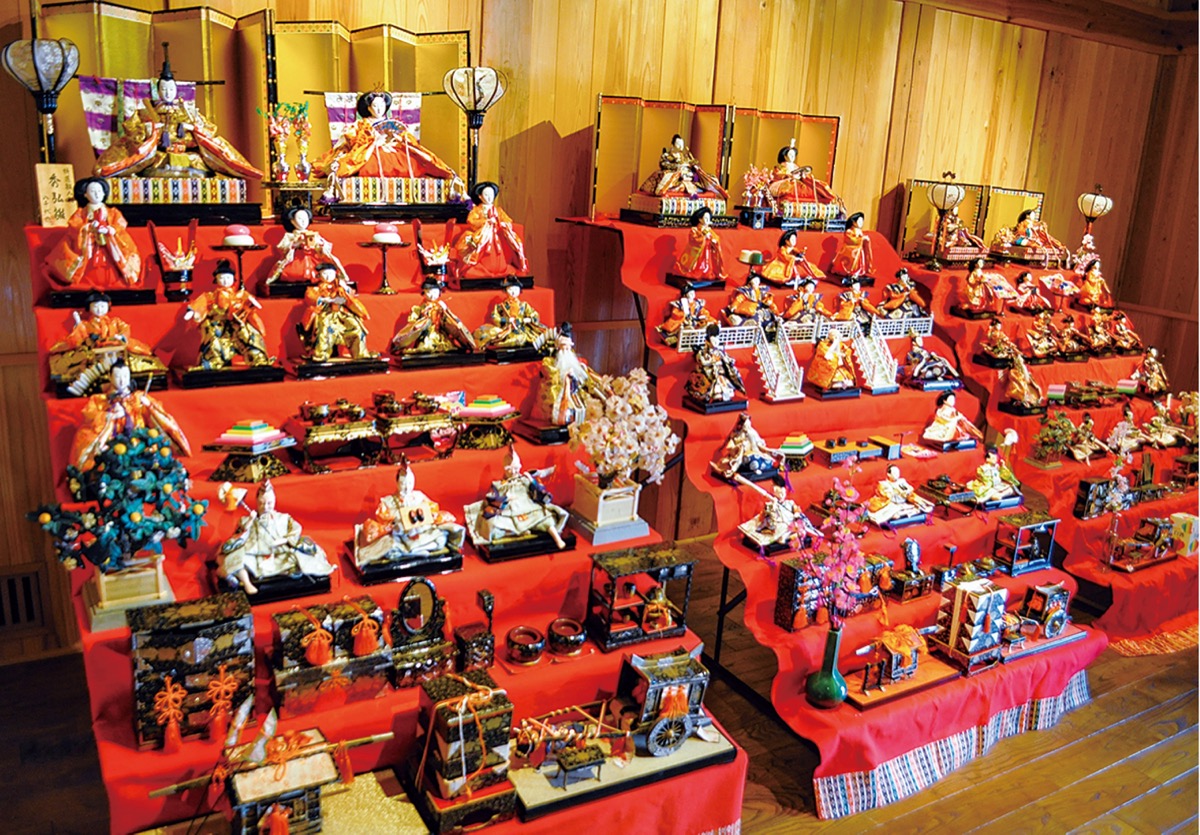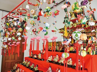 それぞれ「自宅で飾れなくなり、人形がかわいそう」と近隣住民から寄贈されたもので5年前から展示。ひな壇飾りの主流は7段だが、江戸時代後半から昭和40年代ごろまであったという8段飾りも見ることができる。展示はあす3日(金)まで。