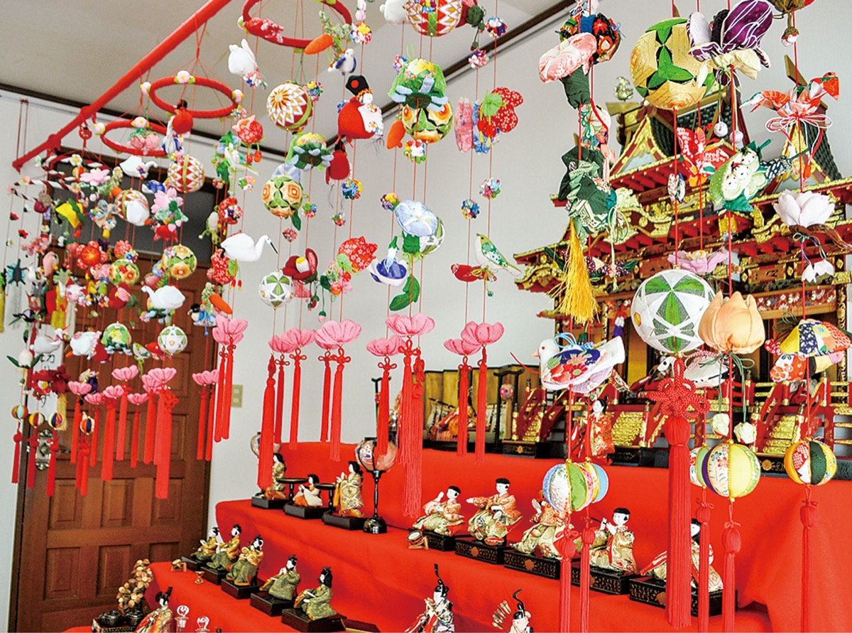 50代〜80代の総勢30人ほどのメンバーが6つのグループに分かれて活動し、1年かけて一つのつるし飾りを完成させる。コロナ禍の中止期間を経て昨年再開。今回が17回目を数える。「今年も開催できて良かった」と同会の高島理恵会長。