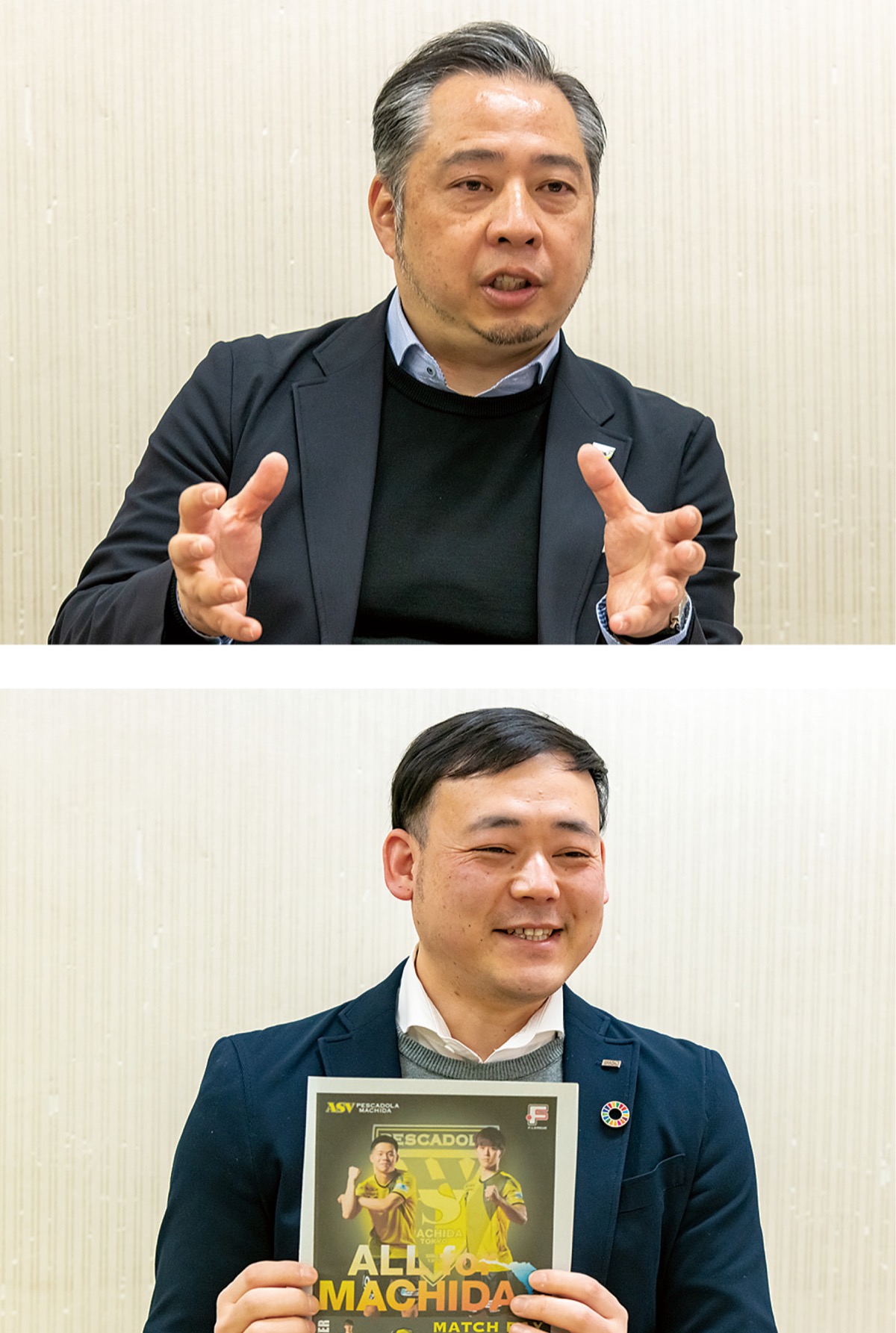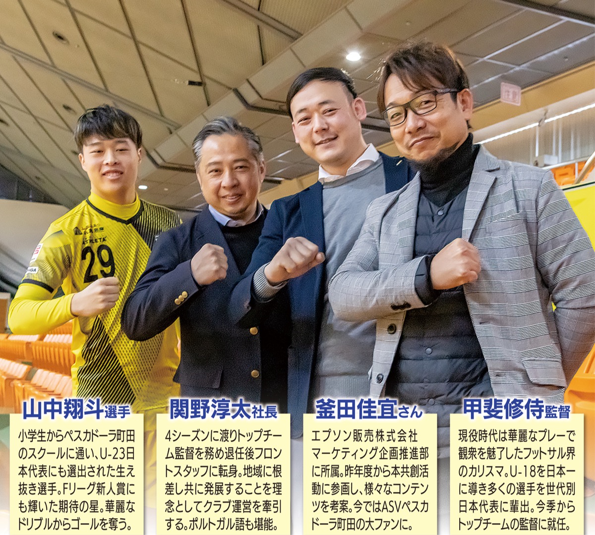 プロフットサルチーム「ASVペスカドーラ町田(以下ペスカドーラ)」は今シーズン、ホーム戦の入場者数リーグ第1位(合計1万6233人)を記録した。その背景にあった新しいアクションとは何か。また、エプソンとの共創とは。町田市立総合体育館でぺスカドーラの関野淳太社長と甲斐修侍監督、エプソン販売(株)の釜田佳宜氏に話を聞いた。