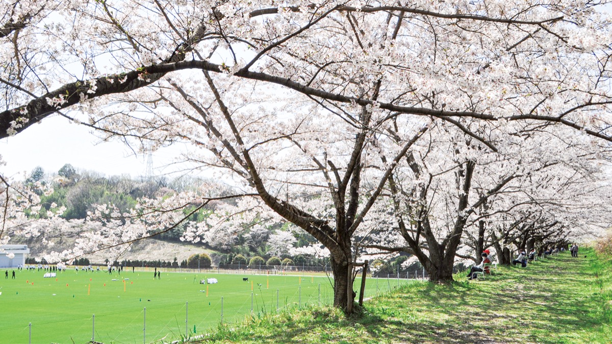 良く晴れた3月29日、FC町田ゼルビア三輪緑山ベースには、今季絶好調の選手らの姿と満開のサクラを堪能する観客たちの姿が見られた。