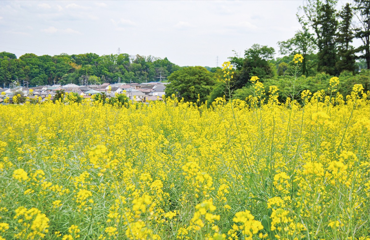 同施設の裏手には、一面に菜の花畑が広がっている。ここで育った菜の花は搾られ、なたね油として販売されている。