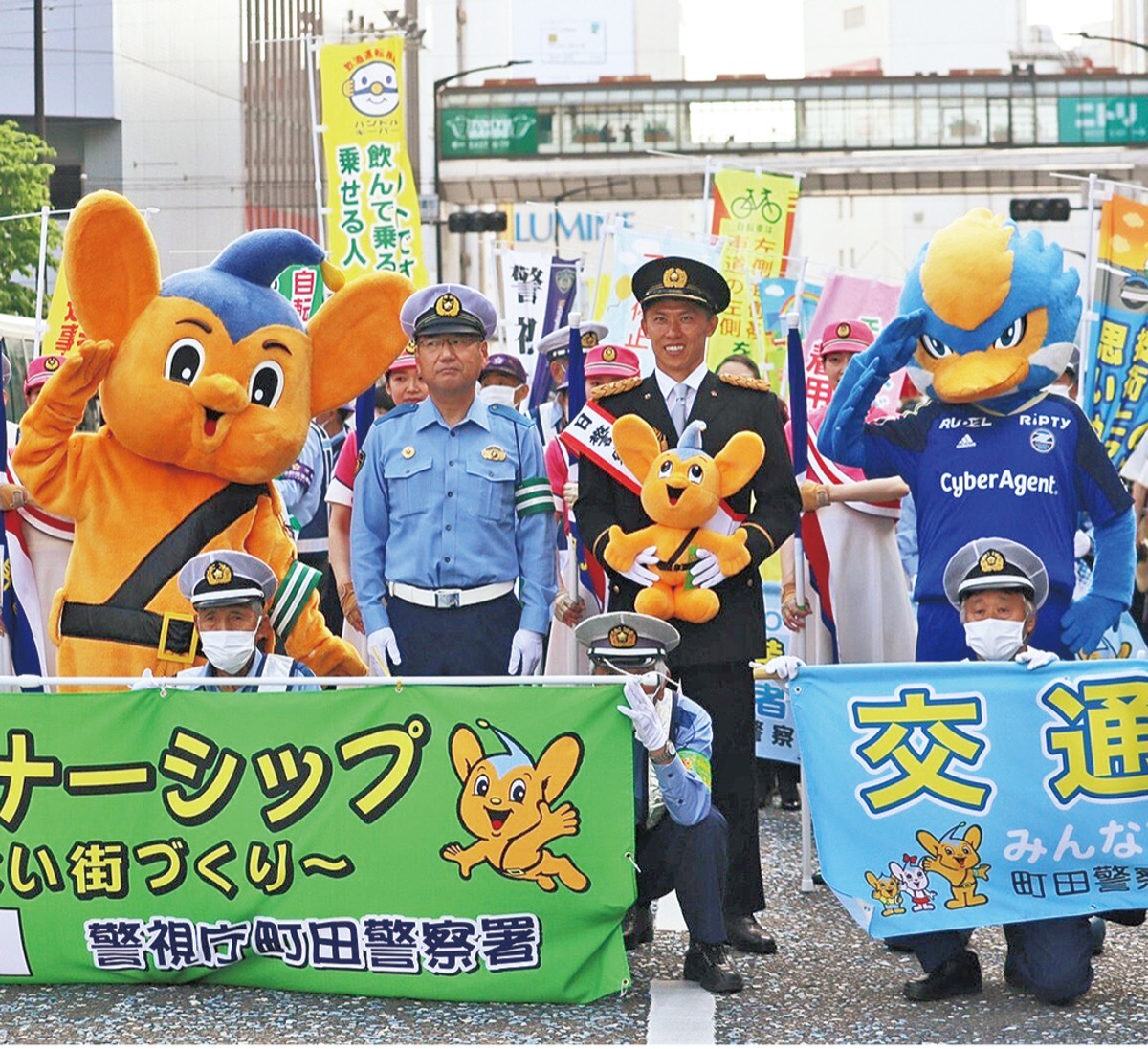 春の全国交通安全運動に先駆け、FC町田ゼルビアの太田宏介選手が5月1日、町田警察署の一日署長に就任。交通安全を啓発するトークショーのほか、原町田大通りを交通規制し大規模なパレードが行われた。