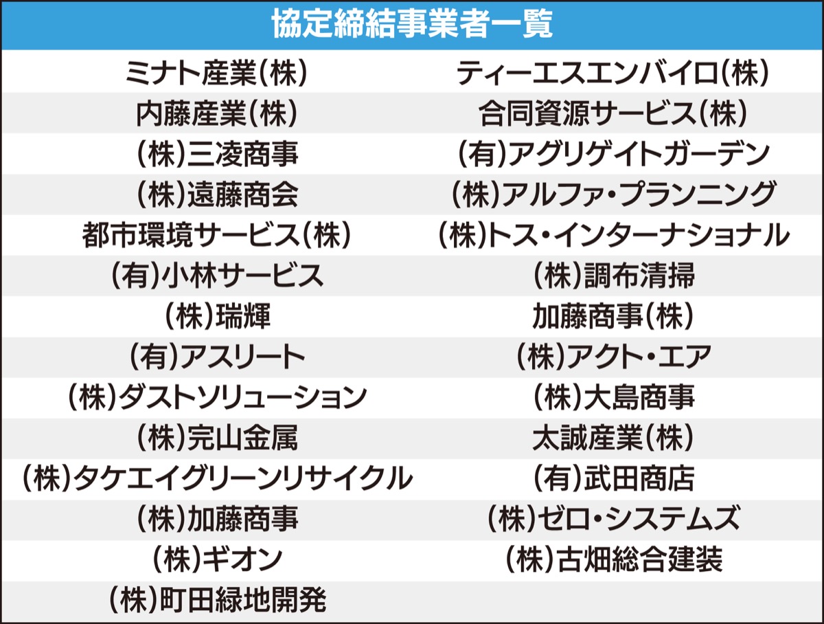 また、事業者らには「仮置場」と呼ぶ、災害時に廃棄物を仮置きする場所の管理、分別などにもあたってもらう考えといい、「行き場のない災害ごみが放置されることも防いでくれるのでは」と市担当者は期待を寄せる。