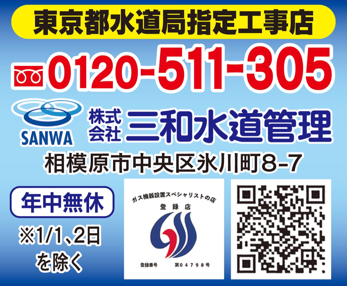 『(株)三和水道管理』は、神奈川・東京を中心に累計6万件超の施工実績を誇る水廻りのプロ。掃除がしやすい上、節水もできる最新トイレ「ピュアレストQR」やノーリツガスふろ給湯器などの住宅設備を特価で販売中。「昨年のお客様アンケート回答3305件のうち、97・7%のお客様に『満足』とご回答頂けました。これからも皆様の信頼にお応えして参ります」と同社担当者。