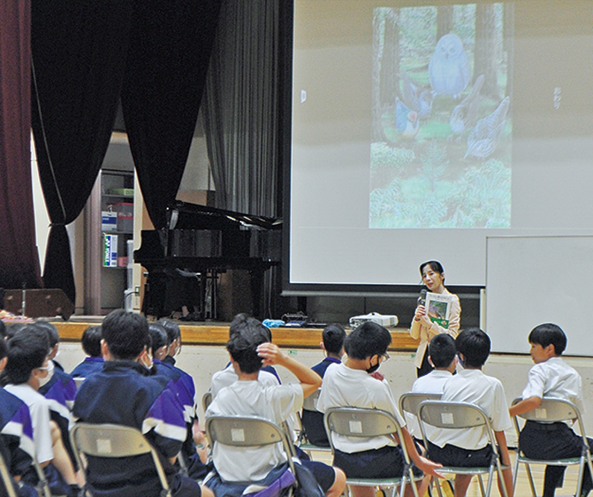絵本の読み聞かせを通して命の大切さを伝える授業が9日、町田市立金井中学校で行われた。講師には絵本作家の夢ら丘(むらおか)実果さんらが招かれ、生徒や来場した保護者らに語りかけた。この日、取り上げられたのは夢ら丘さんが絵を担当した「カーくんと森のなかまたち」。自分の声や姿に自信が持てずにいたホシガラスの「カーくん」が先生や友人に温かい言葉をもらい、元気を取り戻していく物語で、読み聞かせの後は夢ら丘さんが経験したいじめ、知人の自殺の話について生徒たちと対話しながら、命の大切さを伝えた。
