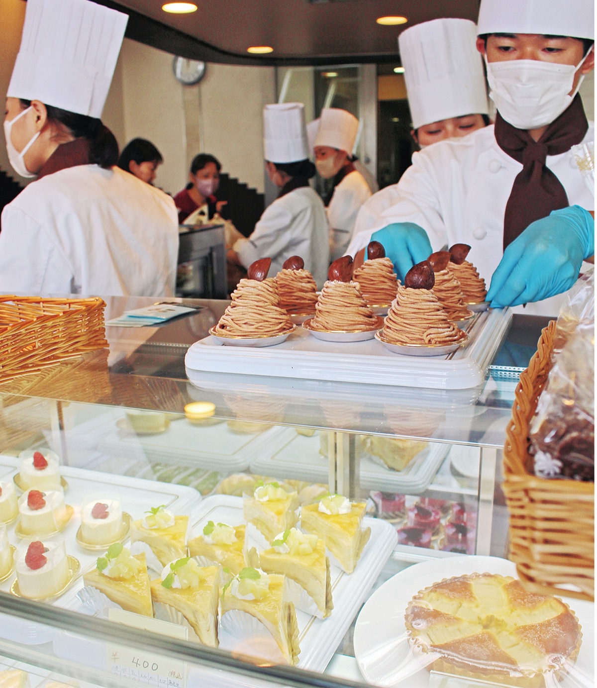 町田製菓専門学校(原町田)に22日、「1日だけのお菓子屋さん」が登場=左写真。同校学生らが手がけた洋菓子や焼菓子、パンなどが店頭に並んだ。これは例年、同校の販売実習として行われているもので、店のオープン時には商品を求め、列をなす人たちの姿がみられた。訪れた女性グループの一人は「毎回楽しみにしている。希望する商品が手に入るか心配」と話し、同じく校内に開店したカフェを前に「食事も楽しみたい」と笑顔をみせた。