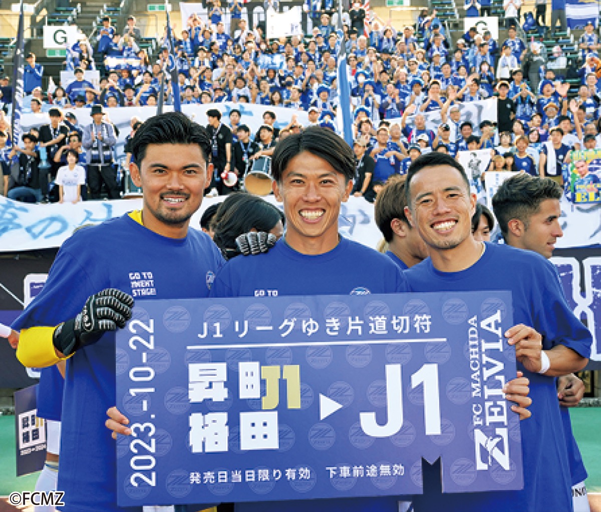 町田市をホームタウンとするサッカーJ2リーグのFC町田ゼルビアは22日、2024年シーズンのJ1昇格を決めた=中面に関連記事。熊本県で同日行われた「ロアッソ熊本」戦に勝利し確定したもので、市内に設けられたパブリックビューイング会場では祝福の声がこだました。