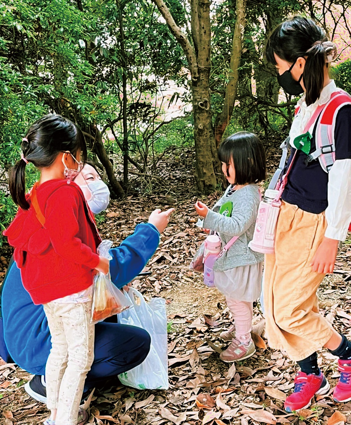 東京家政学院大学(相原町)は、キャンパス内の裏山の自然環境を生かし、子どもたちに豊かな自然体験の場を提供する「森のようちえん」を開講している。