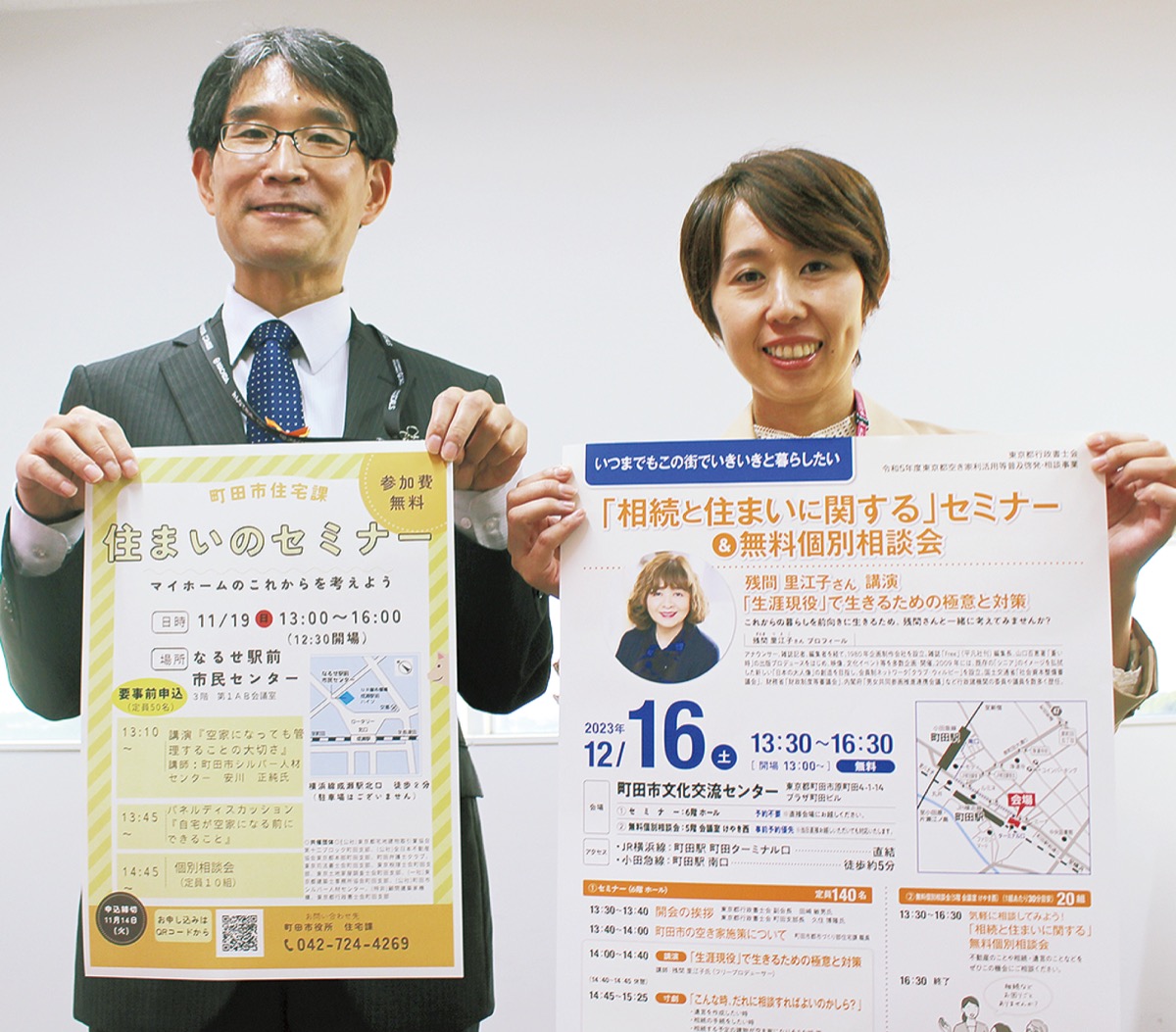 市が開く空き家に関するセミナーは以下の通り。11月19日(日)は、講演「空家になっても管理することの大切さ」がある「住まいのセミナー」がなるせ駅前市民センター(南成瀬)で開かれる。午後1時から4時で、パネルディスカッション「自宅が空家になる前にできること」も予定。