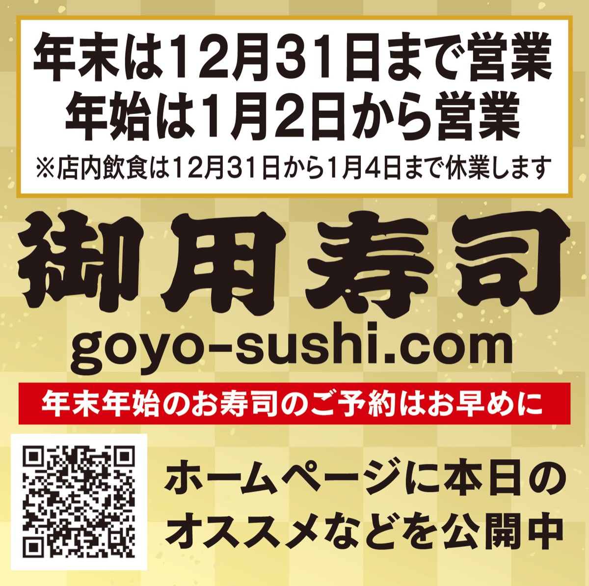 人気の地元持ち帰り寿司店「御用寿司」では今年最後の期間限定で「北海にぎり」と「北海丼」を販売する。期間は11月30日(木)〜12月31日(日)。