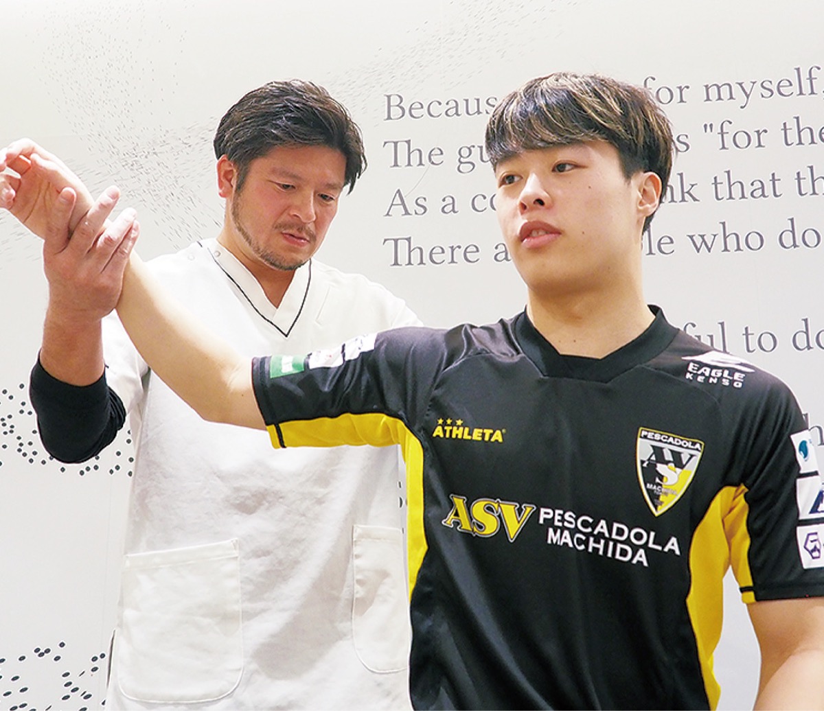 ペスカドーラ町田の選手の体のサポートにあたっているのが、成瀬にある「むらやま整骨院」だ。同院では今年からチームとトレーナー契約を結び、選手の体のケアや、けがをした時のリハビリや疲労回復、トレーニングのサポートに当たっている。実際に毎週、体育館に赴いて選手をみている同院の日極智美さんは「プロの選手につく責任の重大さを感じるとともにやりがいにもなっている。今後も、選手のパフォーマンスを上げる環境を提供していけたら」と笑顔を見せた。