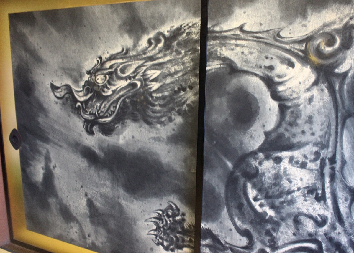 新年を迎えた――。今年の干支は辰だが、町田市内で人知れず躍動する姿をみせる竜が原町田・勝楽寺の本堂にあるふすま絵=写真。町田市の名誉市民で造形美術家として活躍した故、三橋國民さんが描いたものといい、同寺の茂田知暁住職は「三橋さんが当寺の檀家総代だったこともあり、天井絵などと共に描いてくれたもの。真っ白なふすまが一面、竜の絵になった時のことを覚えている」と振り返る。