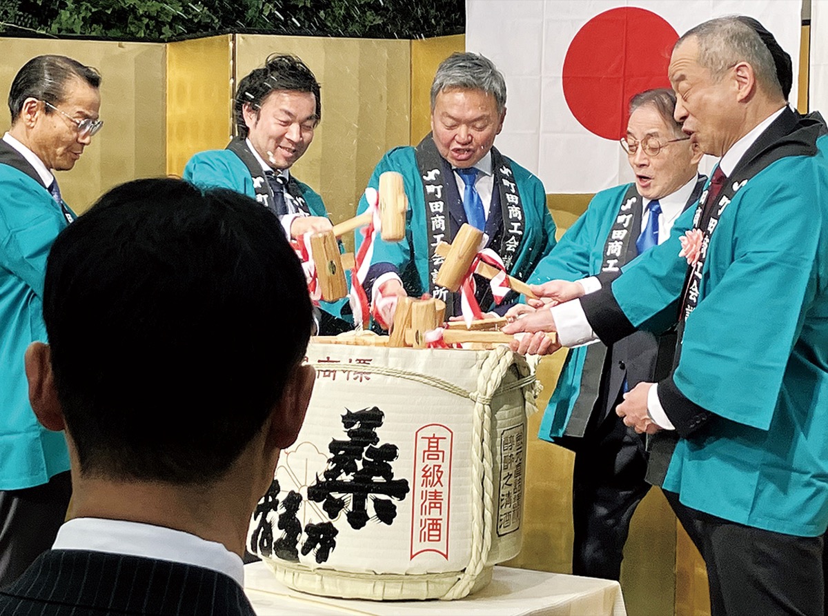 町田市内の企業経営者らのほか、石阪丈一町田市長や町田選出の国会議員、都議ら来賓が参加。新年のあいさつや名刺交換をし、交流する姿がみられた。