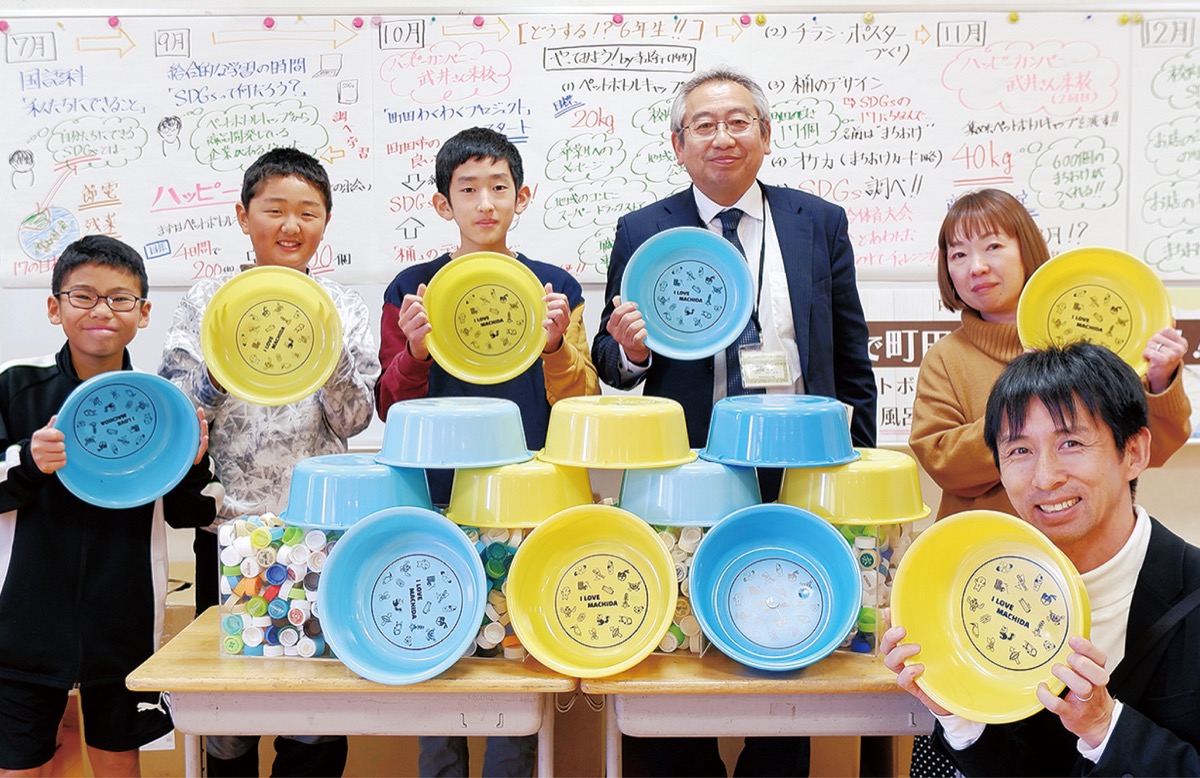 まちおけの制作は、総合的な学習の時間にSDGsを学ぶ中で、「何か子どもたちにできることはないか」と同校の教員・竹川耕一郎さんにより企画されたもので、SDGsの認知を広げ町田を盛り上げることを目的に行われた。これまで児童は校内放送での発信、地域の施設や家族、卒業生に協力を呼び掛けるなど奔走。そのかいもあり、集まったキャップの総量は約40キロ。これらを材料に、民間リサイクル企業の協力のもと、300個の桶が作られることになった。
