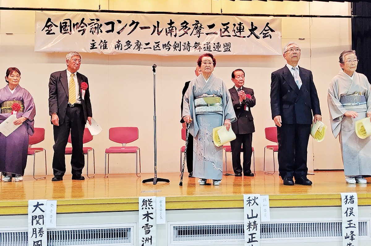 全国吟詠コンクール南多摩二区連大会が先ごろ、なるせ駅前市民センターホールで行われた。29人の参加者らが舞台に立ち、日ごろの成果を披露した。