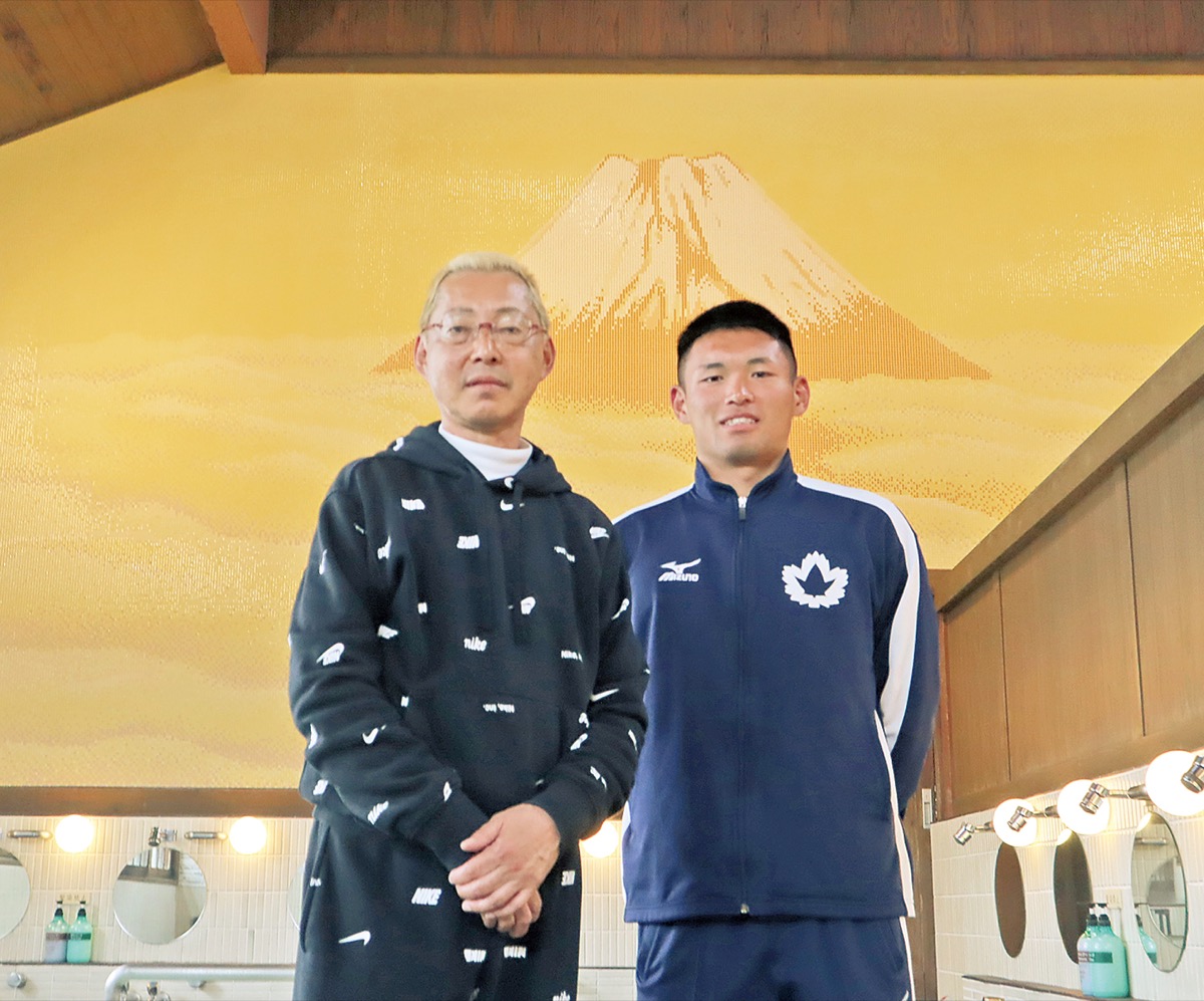 銭湯が競技の力に――。来月行われる関東学生陸上競技大会(関東インカレ)で、10種目に及ぶ走る・跳ぶ・投げる競技の総合点を競う10種競技(男子1部)2連覇を目指す国士舘大学・陸上競技部(多摩市)の岡泰我さん(4年)が息抜きの場としているのが、町田市内唯一の銭湯である大蔵湯(木曽町)。身体を癒し落ち着く空間としてのほか、店主の土田太一さんとの「掛け合い」も競技に向かう「コンディションを整えてくれる」と岡さんは話している。