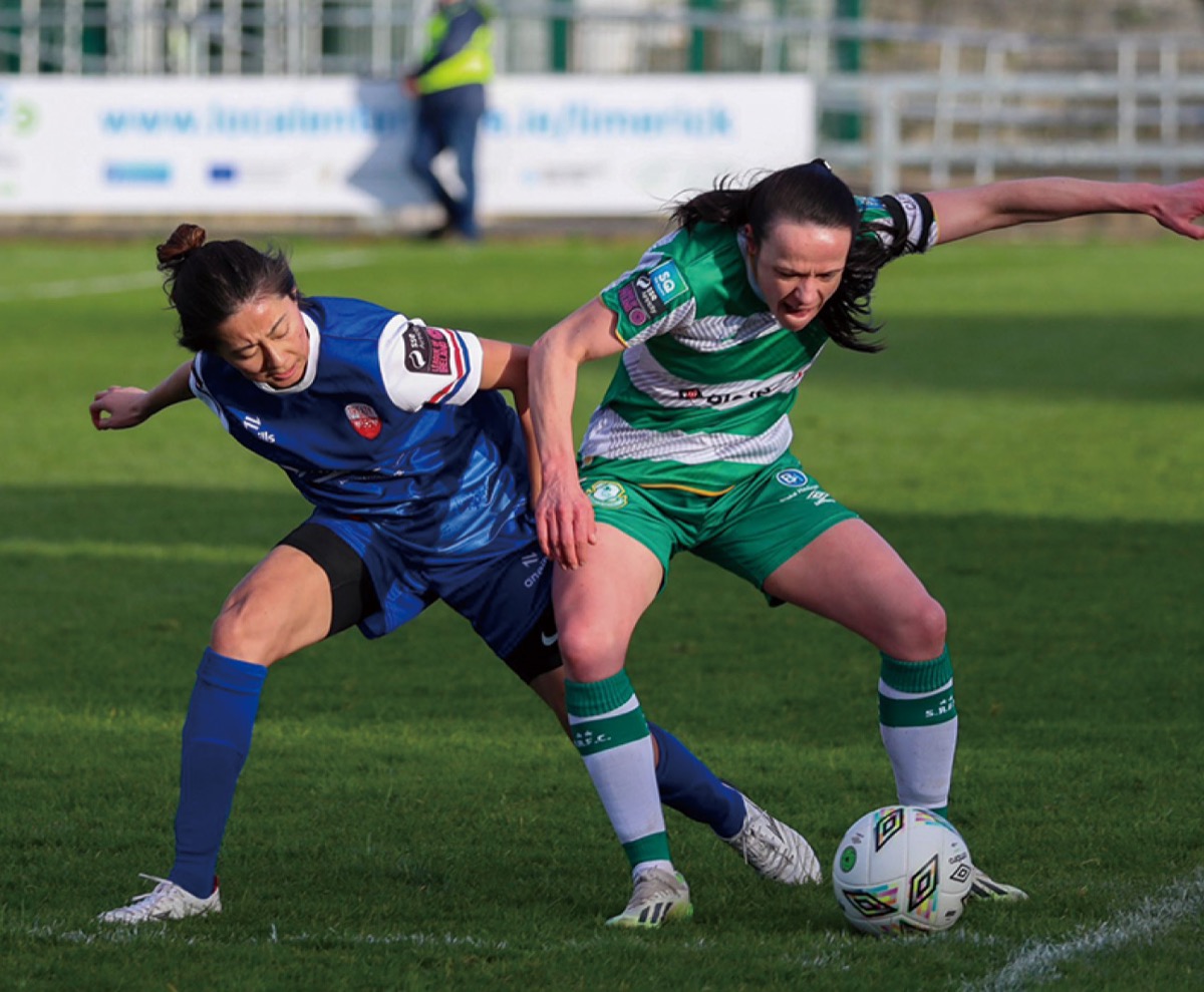 町田市出身の池座綾花さんが、3月に開幕したアイルランドの女子プロサッカーリーグ「アイルランドリーグ プレミアムディビジョン」で奮闘中だ。ディフェンダーとして、今シーズンから初めて挑む舞台でスピード溢れるプレーを披露。攻守に活躍をみせている。昨シーズン、11チーム中10位と低迷したチームは4月25日現在(日本時間)、3戦負けなしの暫定5位(1勝2分)。池座さんは「日本と比べ、アイルランドの選手はフィジカルが強い。負けないように身体づくりを進めながらプレーしている」と現状を語り、「カナダやアメリカ、オーストラリアの選手も在籍するこのチームで優勝したいと考えている」と意気込んでいる。