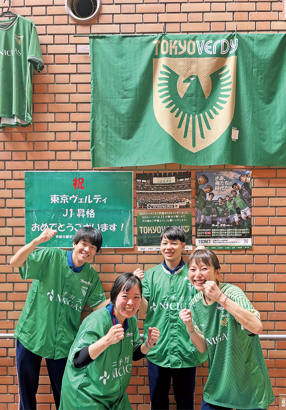 多摩市内でも東京ヴェルディのJ1昇格にわき、応援熱が高まっているのが多摩市立総合体育館のスタッフだ。