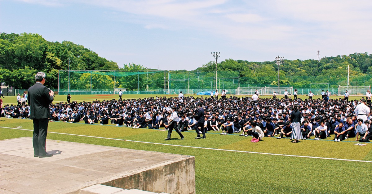 図師町の日本大学第三中学校・高等学校は先ごろ、2029年に迎える創立100周年の記念事業の一環として、総合グラウンドを人工芝へ改修。生徒に公開した=写真。