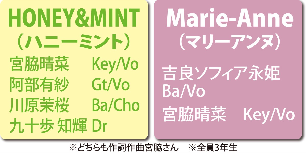 ハニーミントの作詞作曲も担当した宮脇さんは「どちらのバンドも、発表ぎりぎりまで曲を直してきた。大会を目指すことでみんな成長できた」と話している。