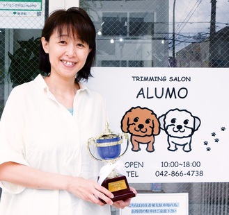 成瀬のトリミングサロン「アルモ」に勤める森野恵美さんが先ごろ、犬のカットの出来栄えなどを競うトリミングコンテストのダブルス部門で1位を獲得した。保護犬のトリマーとしても活動する森野さんは「技術を高め、一頭でも多く犬たちを助けることができれば」と話す。