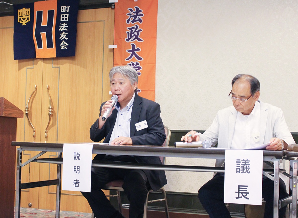 法政大学の同窓会組織、町田法友会が先ごろ、町田市内のホテルで定時総会を開き、今年度計画などが承認された。学生支援に力を入れた23年度の事業報告も行われ、今後もより現役生のための会にしていくことに満場一致で賛成の意が示された。