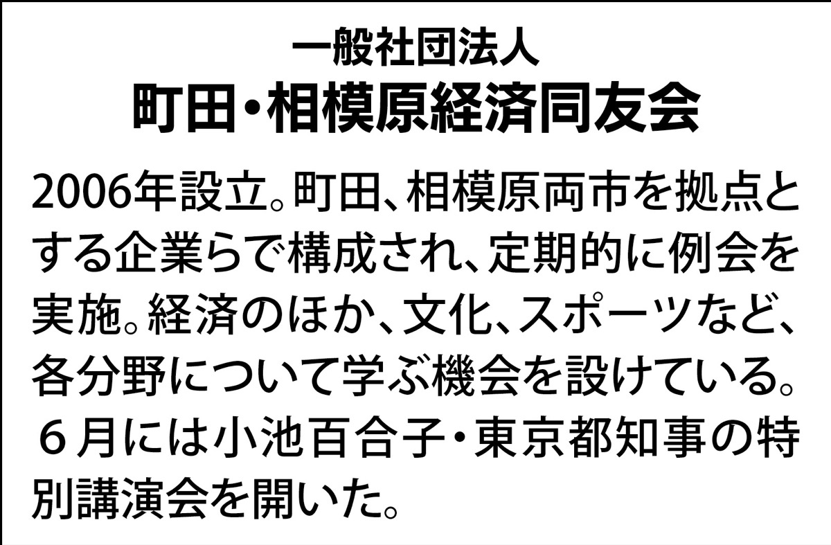 同会の設立は2006年。商圏を同じにする町田、相模原の企業らが経済発展を目指し集まり、結束することで行政などへの発言力を高めてきた。近年は人口減少の時代を迎えるなか、経済発展に必要なものとして多摩都市モノレールの町田方面延伸実現について行政に呼びかけるなど、取り組みを進めている。