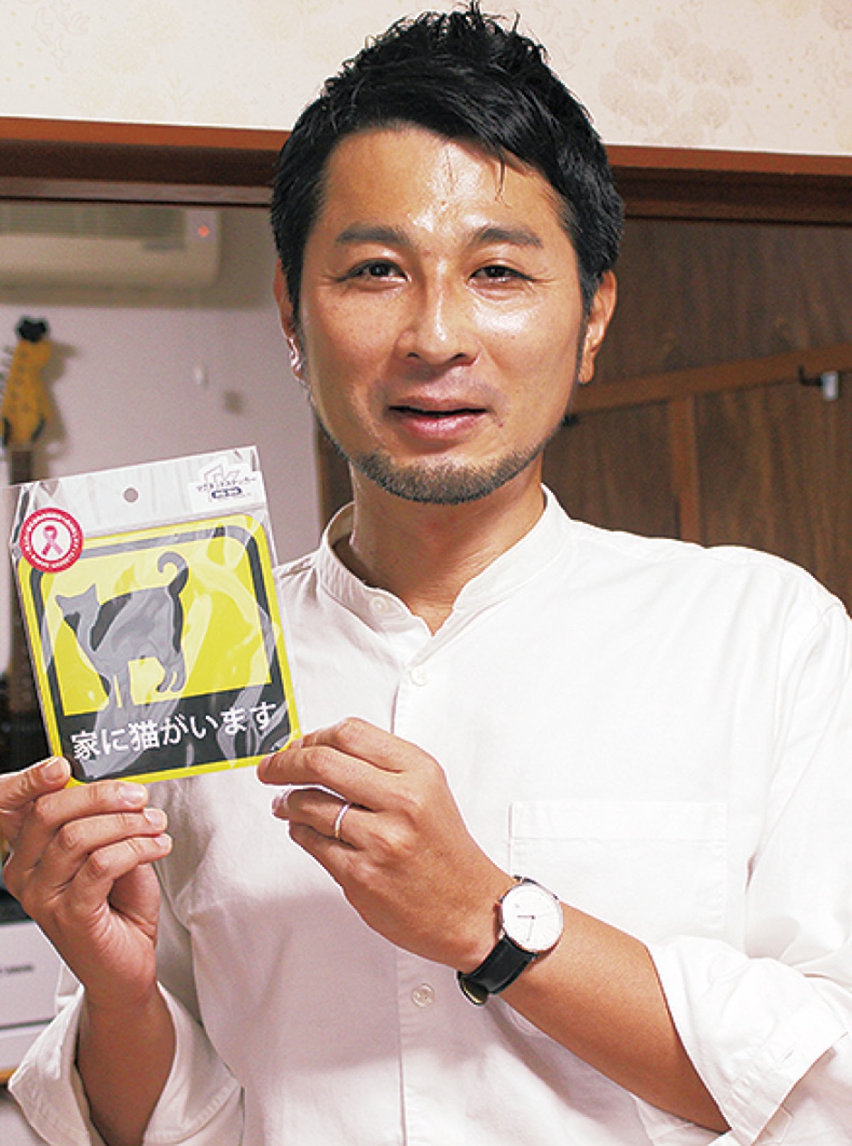 本町田在住の角尾良太さん=人物風土記=がプロデュースする「家に猫がいます」という言葉が書かれたマグネットステッカー=上写真=が「町田の逸品」として存在感を増している。新規性の高い商品として、町田市の認定(町田市トライアル発注認定制度)を受け、町田商工会議所が発行するカタログギフトの商品に選ばれるなどしている。