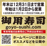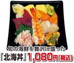 人気の地元持ち帰り寿司店「御用寿司」では11月28日(木)から12月31日(火)まで、今年最後の期間限定で「北海にぎり」と「北海丼」を販売する。