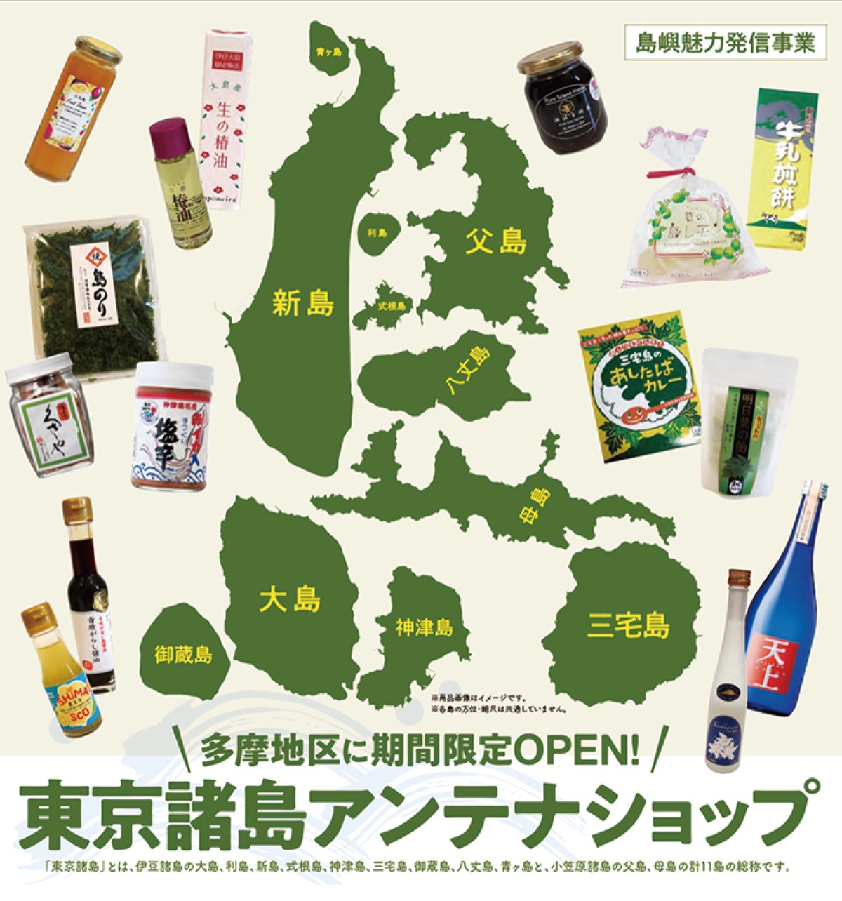 このアンテナショップは多摩エリア各所で開かれてきたもので、町田では初開催となる。各日午前10時から午後7時まで。来店しアンケートに答えると抽選で1人に大島への往復ペア航空券がプレゼントされる。問い合わせは(株)文伸【電話】0422・60・2211。