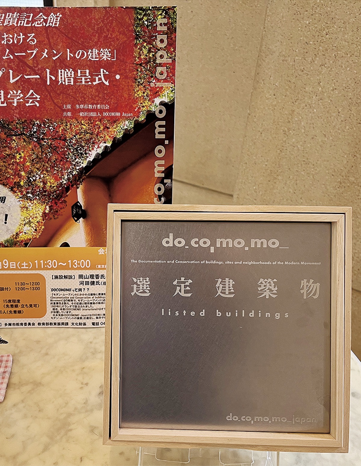 選定された当時はコロナ禍だったためプレートの贈呈は先延ばしになっていたが、東京文化財ウィークに合わせて贈呈式を行うことになった。式には阿部裕行・多摩市長や一般社団法人DOCOMOMOJapan事務局長の玄田悠大さんらが出席した。玄田さんから阿部市長にプレートが手渡され、現在は同記念館内に展示してある。