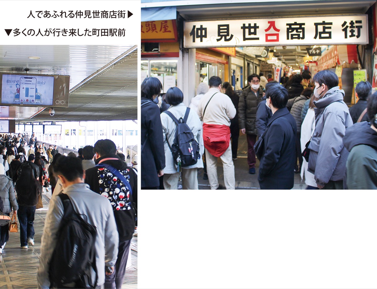 最大9連休となった年末年始――。町田駅周辺では年明け、買い物客らで賑わった。JRと小田急線をつなぐ歩道には人があふれ、原町田の町田仲見世商店街では人気店に並ぶ家族連れの姿などがみられた。