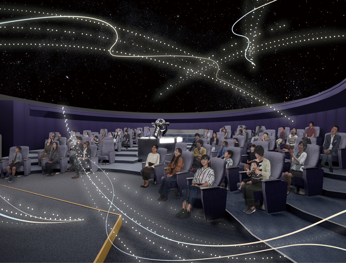 投映部には高輝度4Kプロジェクターを採用し、日本国内プラネタリウムに最高峰の明るい映像を投映する。光学式プラネタリウムとデジタル式プラネタリウムのそれぞれの特長を生かした多彩な映像を体験できる。