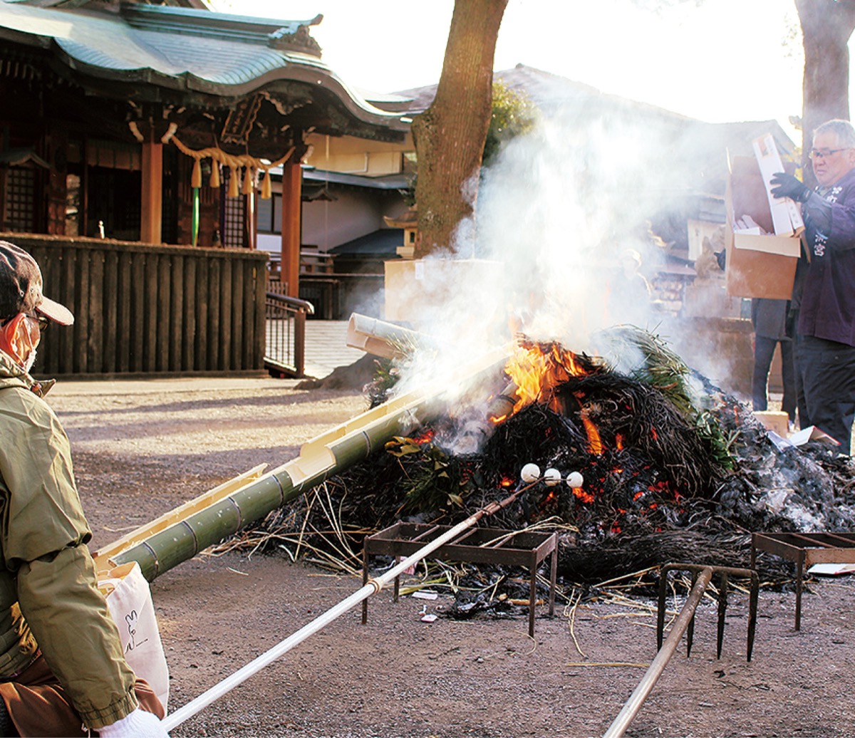 一方、原町田の町田天満宮では14日、お飾りを焚き上げ、その火で焼いただんごを食べて健康を祈願する行事が行われた。