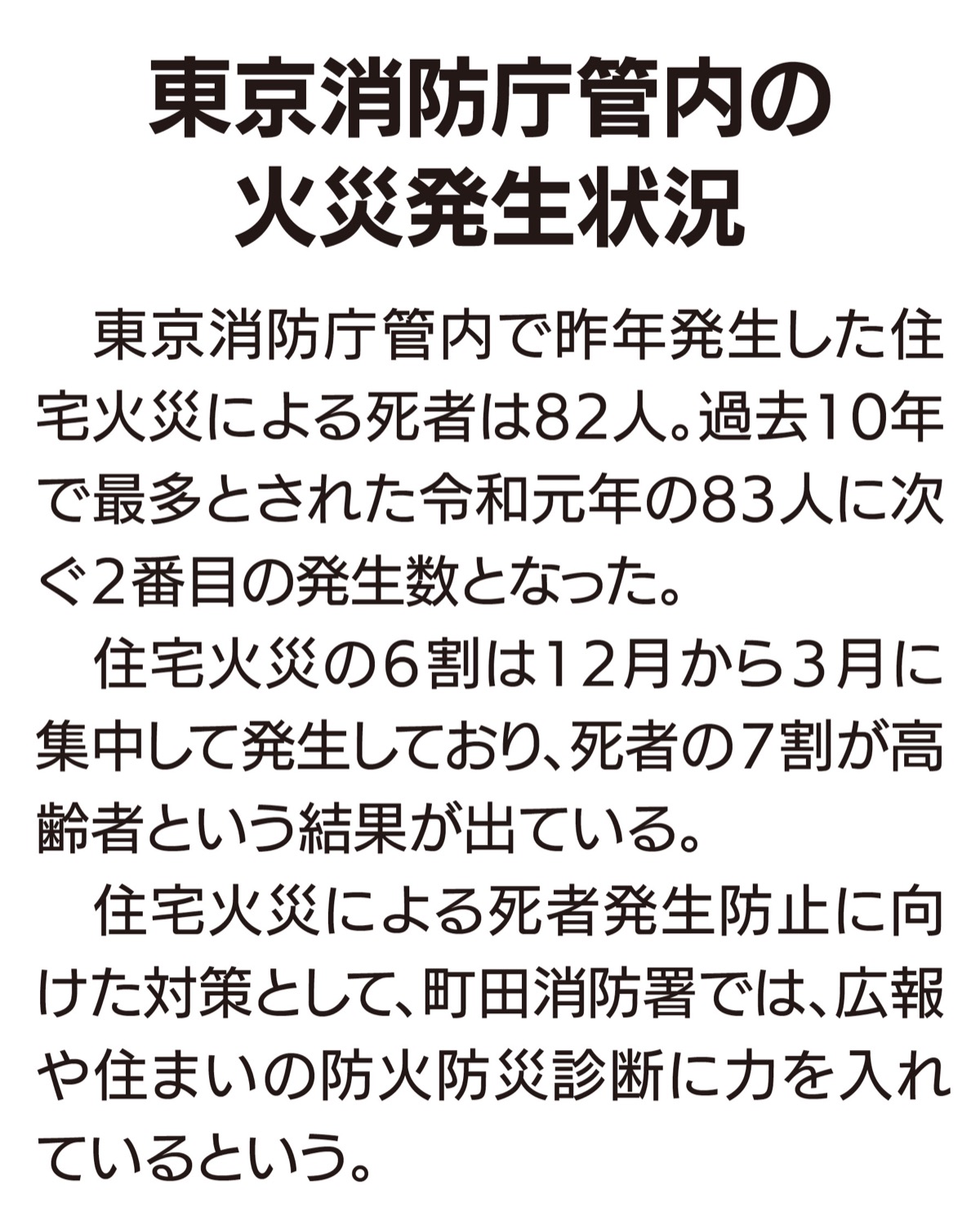 町田市内で年末年始、住宅火災が相次いだ。住宅が密集する相原町や玉川学園などで発生し、町田消防署(黒崎清貴署長)は防火に向けた呼びかけを強化している。