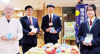 販売日には職業体験として、生徒らは各販売場所へ。ツーリストギャラリーでは呼び込みやレジ打ちにあたる生徒の姿がみられ、自分が考案した和菓子が春の商品として採用された草薙悠侑さんは「『まさか』と思ったが、このような機会をつくってもらい、うれしい」とコメント。生徒らに助言を送ってきた成瀬の和菓子屋「菓匠華月」の上野克浩さんは「クオリティ高いものができた。お客さまの反応もまずまず。これをきっかけに生徒のなかから和菓子職人が生まれてくれれば」と笑顔をみせた。商品は菓匠華月で販売し続けるという。