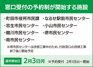 町田市役所市民課と各地域の市民センターで来月から、窓口利用のオンライン予約が可能となる。パソコンやスマートフォンで事前に訪問時間を指定し、当日に受付(チェクイン)するしくみ。待ち時間の緩和が期待される。